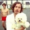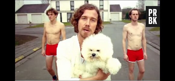 On y voit Julien Doré avec un chien dans les bras, marchant dans les rues d'un quartier résidentiel et accompagné de deux "danseurs" en short rouge et torse nu.